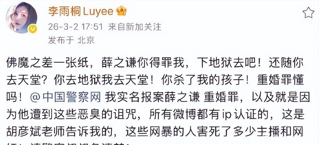 早在2017年,当薛之谦与前妻高磊鑫宣布复合之际,李雨桐便曾连发万字长文,附带银行流水截图、语音文件等材料,控诉其“情感欺诈”“借车祸博关注”“强迫终止妊娠”等多项严重指控。彼时舆论汹涌,“锤从天降”的节奏几乎将薛之谦的职业生涯推至悬崖边缘。